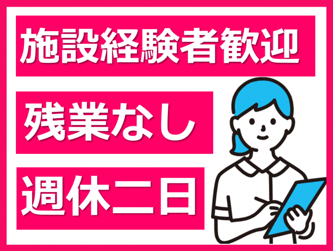 介護施設等の勤務経験者歓迎/残業なし/月9~10日休み/完全週休2日制/アットホームで楽しい職場