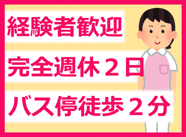 経験者歓迎/完全週休2日制!安定した休みが取れます/社会保険完備/最寄りのバス停から徒歩2分