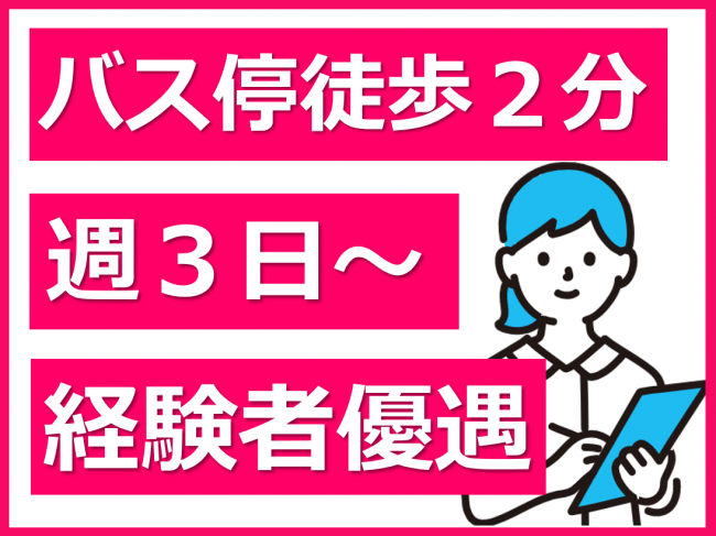週3日~/経験者優遇/フルタイム/勤務日数相談OK/残業ほぼなし/最寄りのバス停から徒歩2分