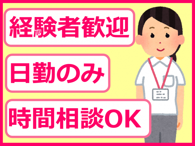 ・日勤のみ(夜勤なし)!業務開始時間10:30~19:30の間の希望時間で、8時間程度の勤務で応相談!