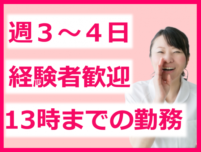 看護経験者歓迎/13時までの午前のみ/土日祝固定休/昇給賞与あり/勤務日数・時間相談可