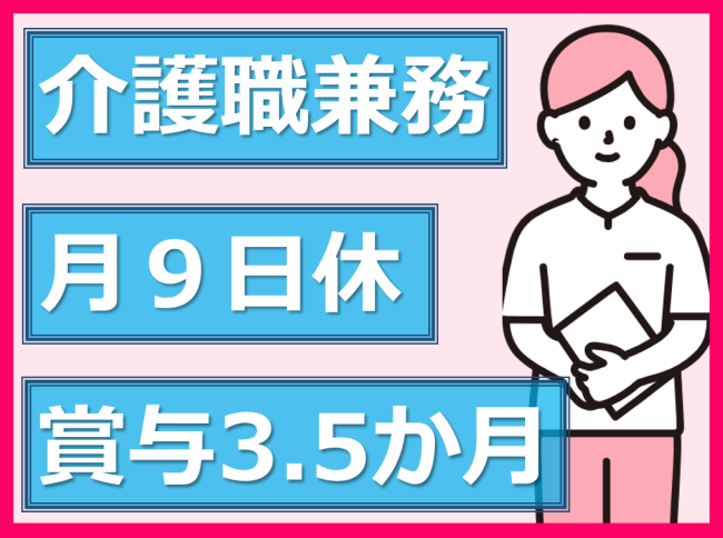 介護職兼務が可能な方募集/ケアプラン作成業務の経験者歓迎/月9日休み/賞与3.5カ月/希望休あり