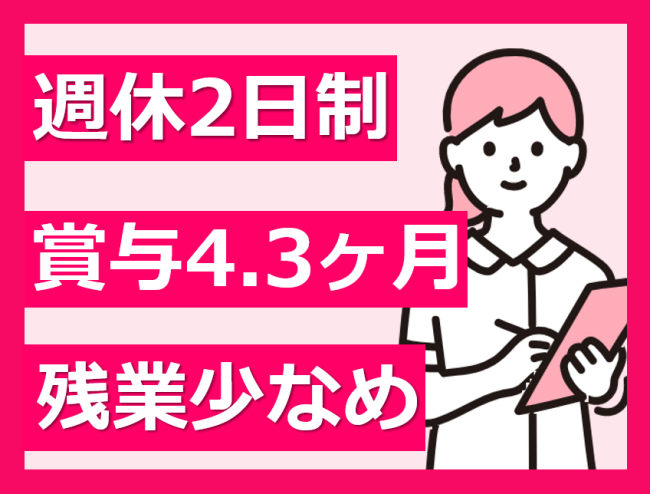 託児所完備/残業少なめ/月9日休み/賞与4.3カ月/完全週休2日制