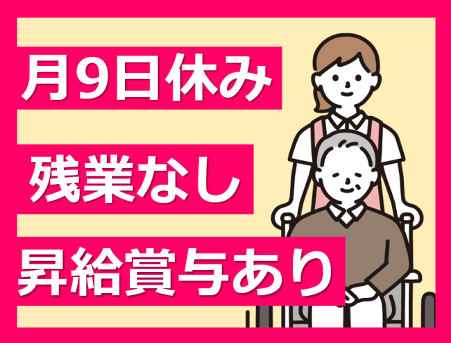 初任者研修以上の方歓迎/残業なし/月9日休み/日勤のみもOK/年末年始休み/車通勤OK