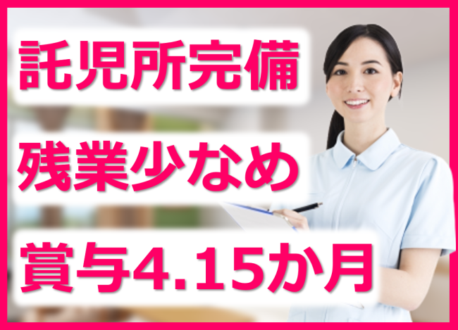 託児所完備!小学3年生まで利用可/残業ほぼなし/賞与4.15カ月/月9日休み/職場環境改善を推進