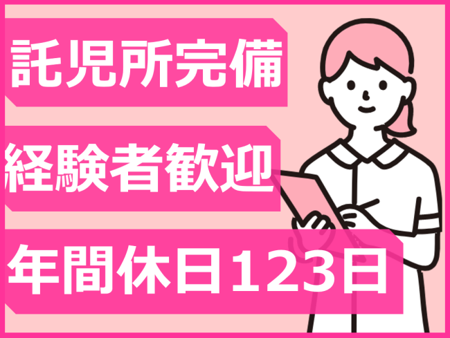 託児所完備/経験者歓迎/年間休日123日/賞与3.35カ月/週休2日制/保育料支給/夜勤専従も可