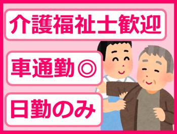 | 求める人材 | 〇学歴 ・不問 〇必要な経験・スキル ・通所施設や入所施設での介護業務の経験や、他業種での接客業の経験があると尚良い ・PCスキル:記録はパソコンを使用しますが、一般的な文章が入力できれば大丈夫です 〇必要な免許・資格 ・介護職員初任者研修修了者(旧ホームヘルパー2級)、介護福祉士:あれば尚可 ・普通自動車運転免許:必須(AT限定可) |