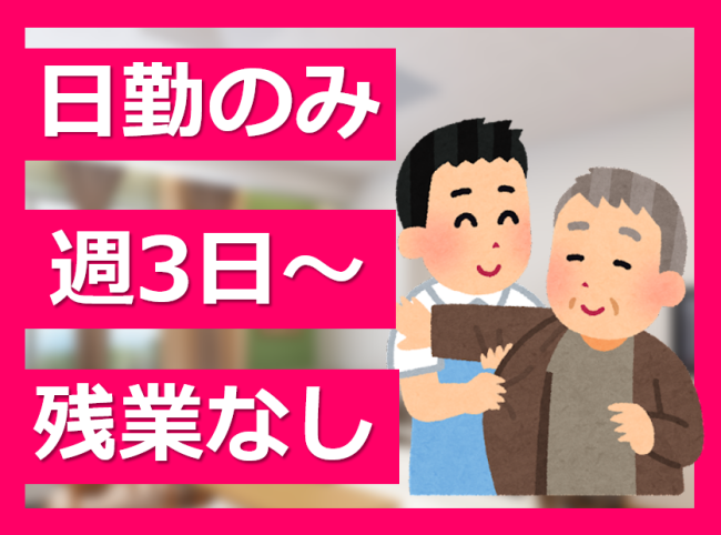 | 求める人材 | 〇学歴 ・高校以上:必須 〇必要な経験・スキル ・不問 〇必要な免許・資格 ・介護福祉士、介護職員実務者研修修了者(旧ホームヘルパー1級)、介護職員初任者研修修了者(旧ホームヘルパー2級):あれば尚可 ・普通自動車運転免許:必須(AT限定可) |