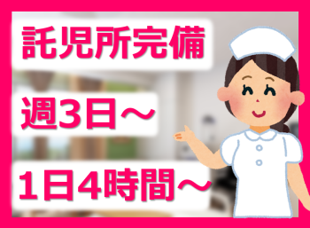 託児所完備/週3日~1日4時間~/フルタイムもOK/昇給有/日祝休み/日数相談可