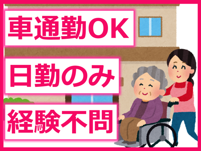 | 求める人材 | 〇学歴 ・不問 〇必要な経験・スキル ・不問 〇必要な免許・資格 ・介護職員初任者研修修了者(旧ホームヘルパー2級):あれば尚可 ・普通自動車運転免許:必須(AT限定可) |
