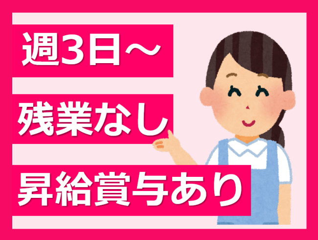 ・土日祝に勤務可能な方歓迎!残業なし!日勤のみ(夜勤なし)!