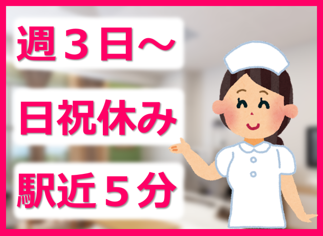 週3日~、1日7時間~/日祝固定休/賞与0.1カ月/昇給あり/勤務日数相談OK/駅チカ5分以内