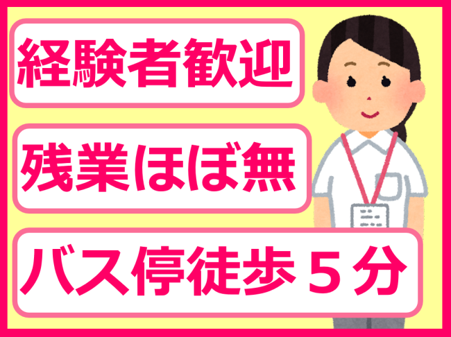経験者歓迎/残業ほぼなし/賞与3.25カ月/手当充実/勤務時間応相談/最寄りのバス停から徒歩5分