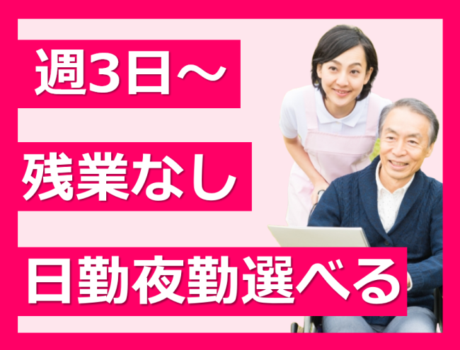 | 仕事内容 | 【具体的な仕事内容】 介護付有料老人ホームにおける介護業務 ・日常生活の食事・排泄・入浴の援助やケアを行う ※夜勤のみの勤務も可 |
