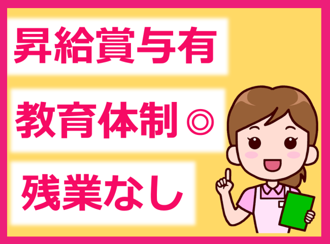 初任者研修以上歓迎/残業なし/年末年始休み/昇給賞与有/丁寧な指導で安心して働けます