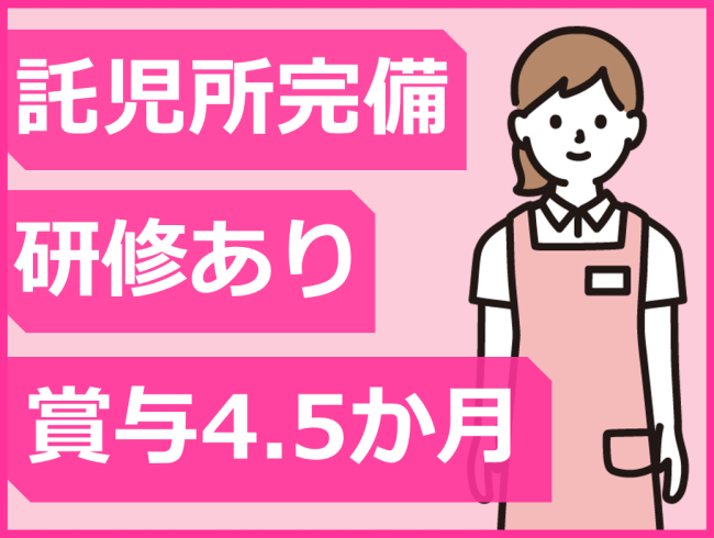 託児所完備/残業少なめ/賞与4.5カ月/しっかり研修期間もあるので安心してお仕事を始められます