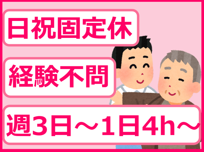 初任者研修以上歓迎/経験不問/日祝休み/昇給有/GW・盆・年末年始休み/勤務時間・休日等相談OK