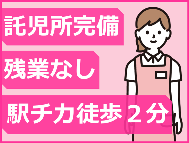 託児所完備(~2歳)/初任者研修以上歓迎/残業なし/月8~10日休み/手当充実/駅チカ5分以内