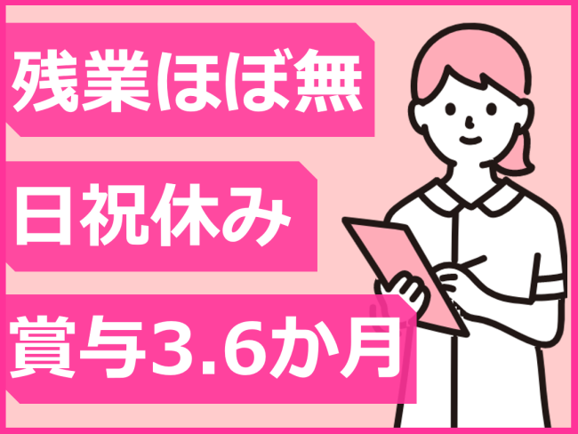 ・残業ほぼなし!日勤のみ(夜勤なし)!