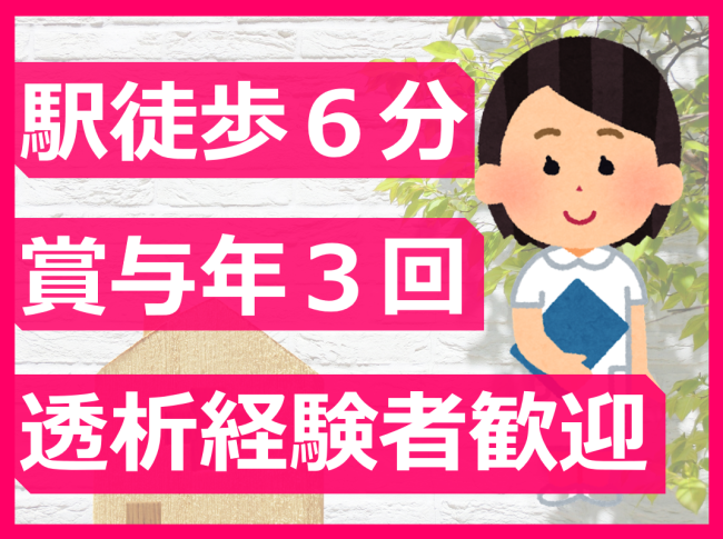 透析業務経験者歓迎!賞与年3回!5.2か月分!呉駅から徒歩6分で通勤も便利です!