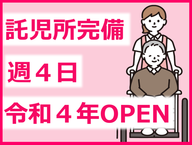 託児所完備/週4日/フルタイム/昇給賞与あり/勤務日数・時間相談OK/令和4年7月オープン