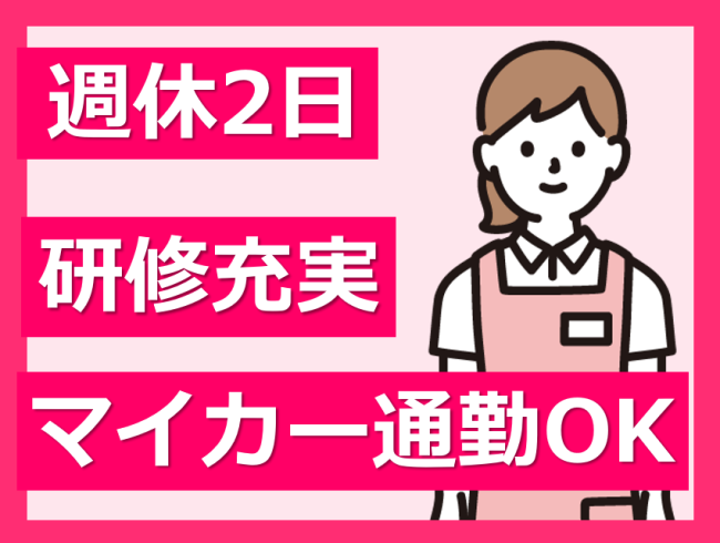有資格者歓迎/経験者優遇/残業少なめ/完全週休2日制/研修充実/車通勤可