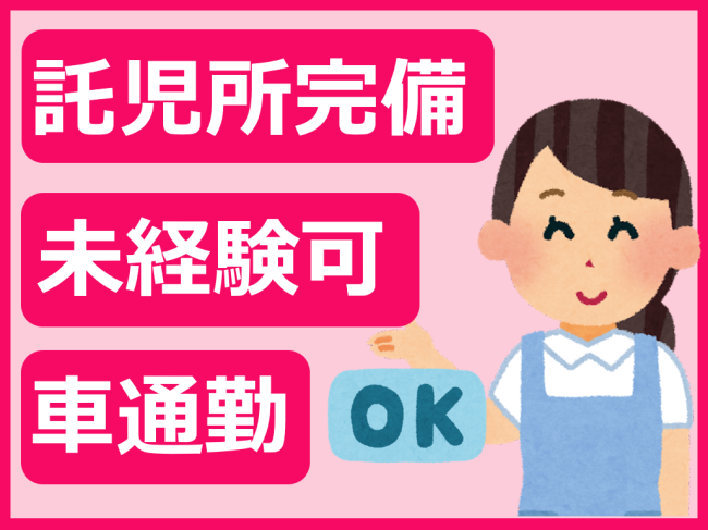 託児所完備/資格や経験は問いません/昇給賞与あり/車通勤OK/正社員登用あり