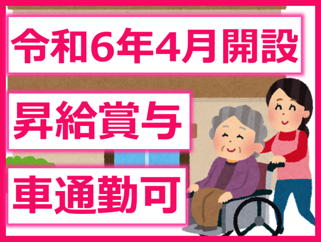 2024年4月開設の新しい施設/経験者、介護福祉士歓迎/土日休/昇給賞与あり/車通勤可