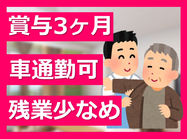 | 求める人材 | 〇学歴 ・不問 〇必要な経験・スキル ・不問 〇必要な免許・資格 ・介護福祉士:必須 ・普通自動車運転免許:必須(AT限定可) |