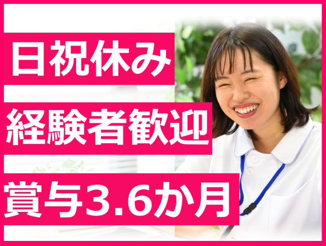 看護業務経験者歓迎/日祝固定休!年末年始、盆休み!プライベート充実/賞与3.6カ月/木土午後休み