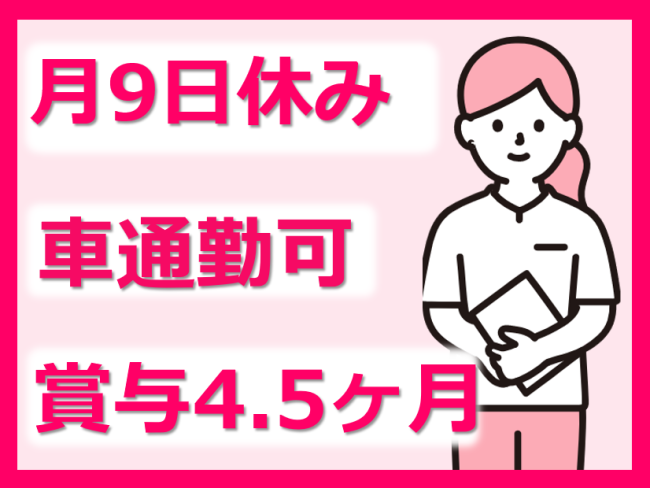 賞与4.5ヶ月!残業なし/月9日休み/車通勤可