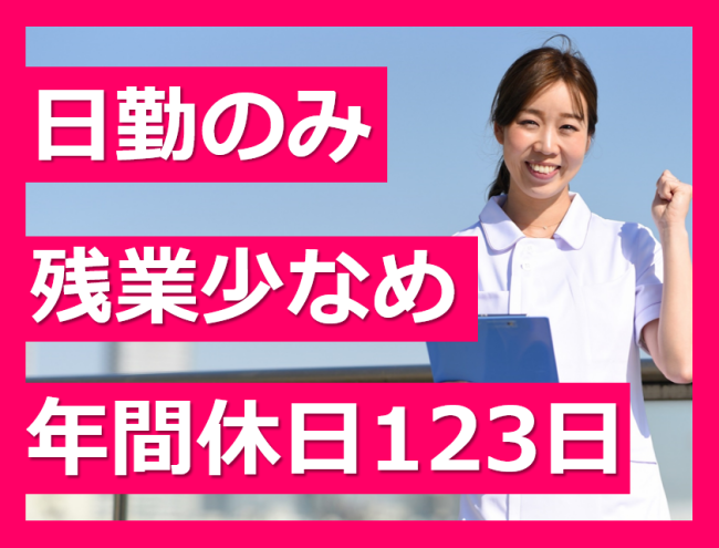 残業かなり少なめ/年間休日123日!月10日休み!日勤のみで休みもしっかり取れる/昇給賞与あり
