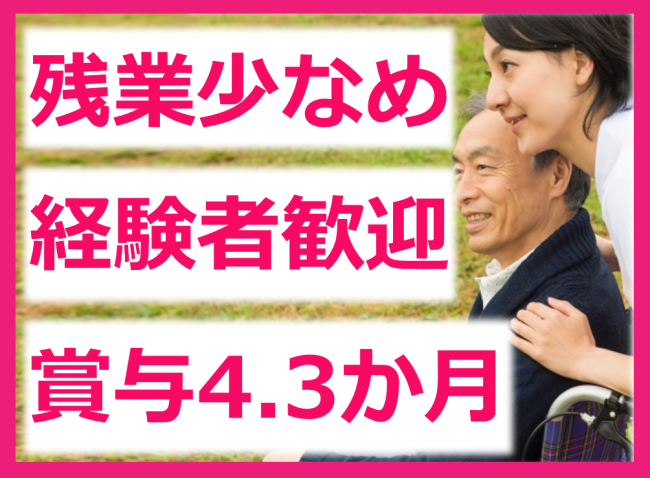 介護福祉士、介護業務経験者歓迎/賞与4.3カ月!頑張りをしっかり評価/残業少なめ/住宅手当あり