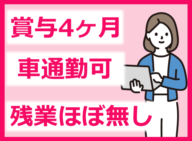 残業ほぼなし/月8~10日休み/賞与4カ月/先輩が丁寧に指導してくれるので未経験でも安心!