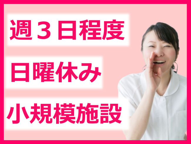 ・勤務は週3日でOK!残業なし!日勤のみ(夜勤なし)!