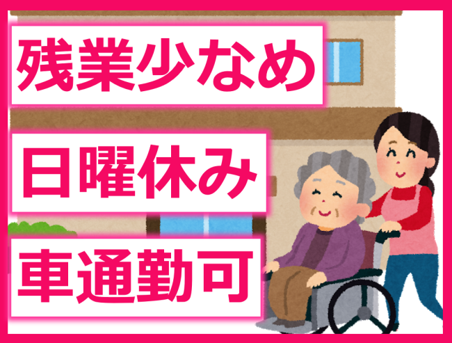 1年以上の介護職経験者歓迎/残業少なめ(月平均4時間)/日曜固定休/昇給賞与あり
