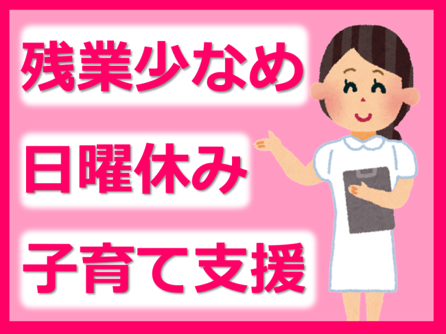 ・残業かなり少なめ!日勤のみ(夜勤なし)!日曜固定休!