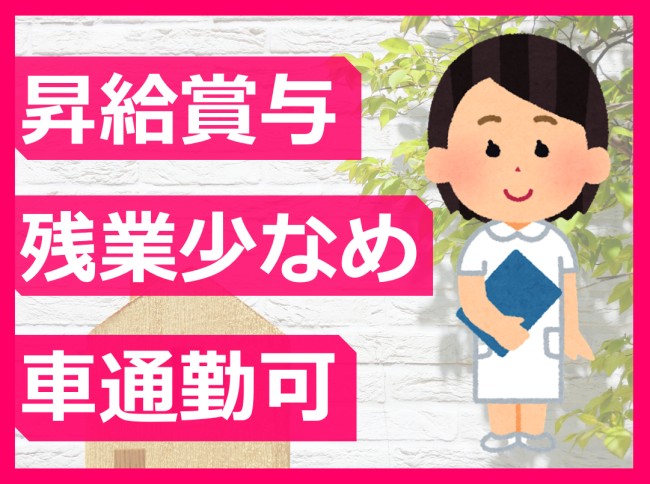 看護経験がある方・土日祝出勤できる方歓迎/残業少なめ/昇給賞与あり!頑張りに還元/社員登用あり