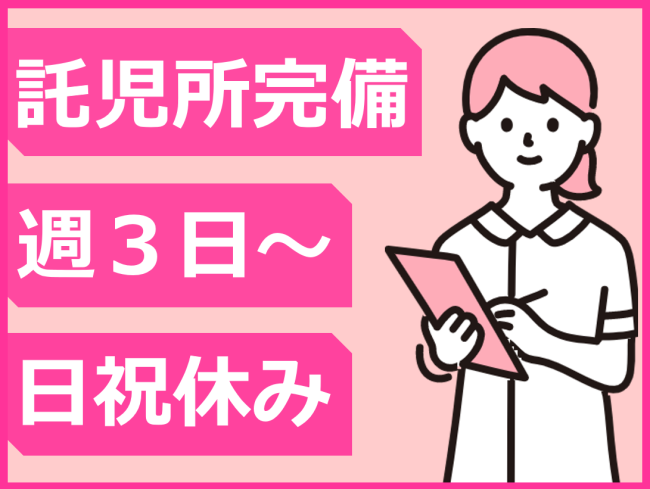 週3日~/託児所完備!近隣にあり/土曜出勤可能な方/日祝固定休/昇給あり/勤務時間・日数相談OK