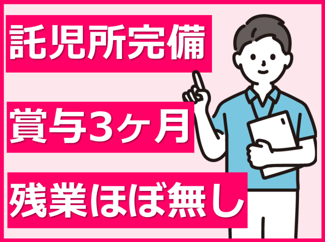 託児所完備/残業ほぼなし/賞与3カ月/近くのバス停から徒歩3分/フォロー体制万全!安心して働ける