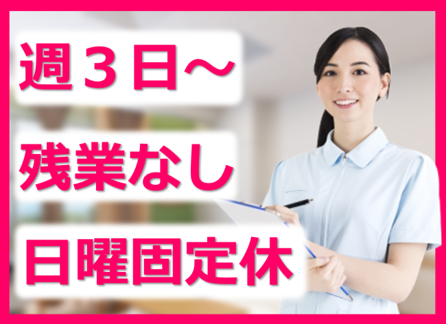 ・残業なし!日勤のみ(夜勤なし)!日曜固定休!