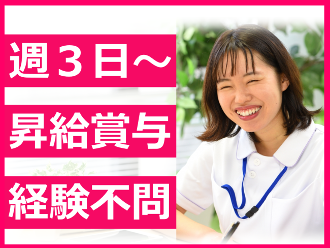 | 求める人材 | 〇学歴 ・不問 〇必要な経験・スキル ・不問 〇必要な免許・資格 ・看護師、准看護師:いずれか必須 ・普通自動車運転免許:あれば尚可(AT限定可) |