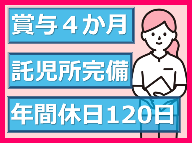 託児所完備/賞与4カ月!仕事へのモチベーションもUP/残業ほぼなし/日曜固定休/年間休日120日