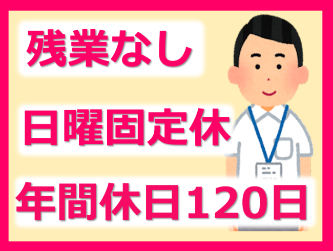 残業なし/年間休日120日!しっかり休める職場環境/日曜固定休/完全週休2日制/賞与3カ月