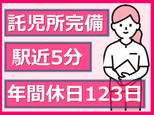 未経験でも応募OK/託児所完備/年間休日123日!プライベート充実/賞与3.35カ月/駅チカ5分