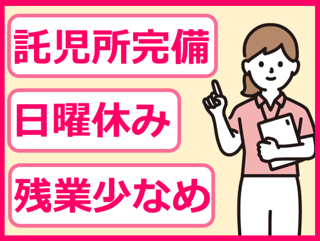 託児所完備!子育て世代をサポートします/残業少なめ/日祝固定休/夏季・年末年始休み/特別休暇あり