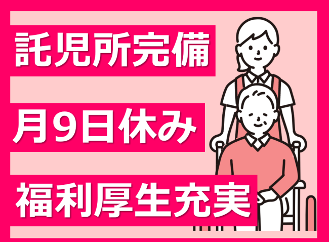 託児所完備!給食代のみで利用OK/介護福祉士歓迎/残業ほぼなし/月9日休み