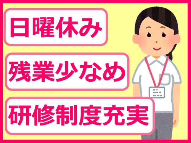 ・残業かなり少なめ!日曜固定休!完全週休二日制!