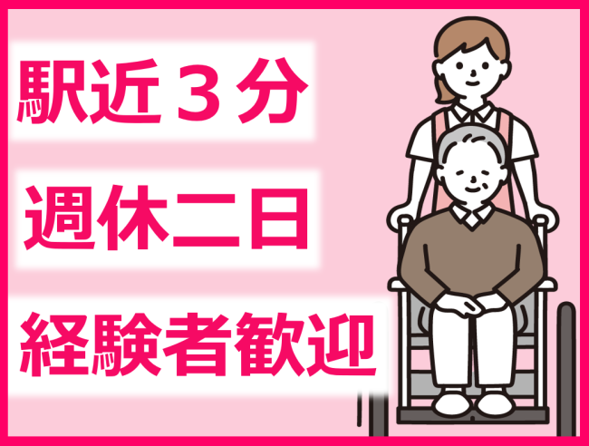 介護施設等での経験者・有資格者歓迎/日曜休/完全週休2日制/希望休みあり/残業少なめ/駅チカ3分
