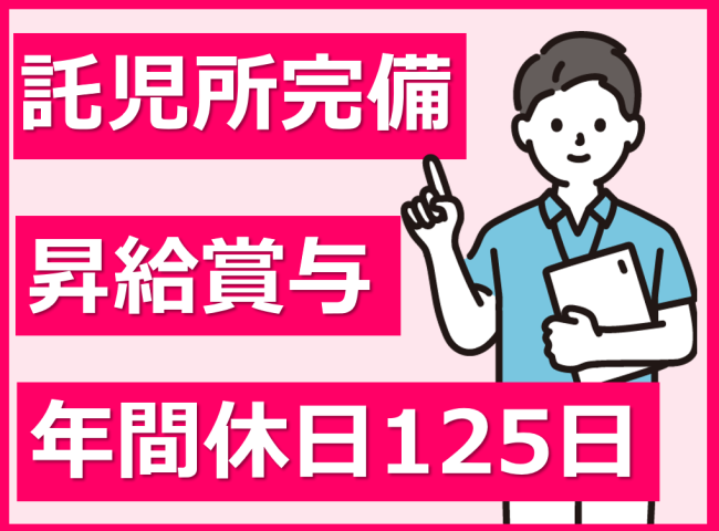 託児所完備/賞与4.25カ月/年間休日125日/残業ほぼなし/完全週休2日制/リクエスト休日あり